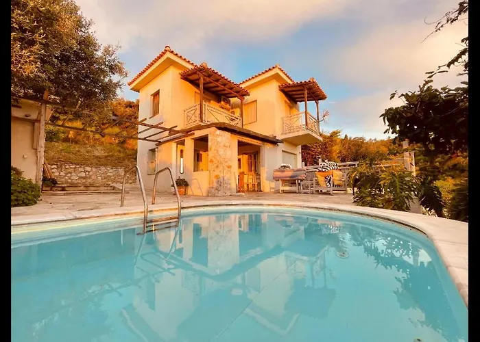 Vila Hikers Villa Trail 5 & 6 Moni Evaggelistrias je umístěna 2 km od Pláž Xanemos, je 2-ložnicové ubytování s terasou. Vila Hikers Villa Trail 5 & 6 se nachází v 5 minutách chůze od centra města Moni Evaggelistrias a nabízí soukromý plavecký bazén.